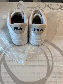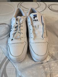 Scarpe fila bianche che manca un laccio in una delle due scarpe