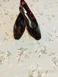 Scarpe donna modello ballerina in plastica maculata color marrone e nero, marca ZARA, mai usate, n°39.