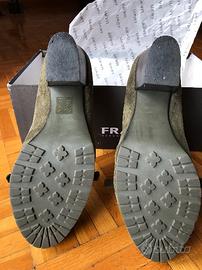 Scarpe Frau n. 36, colore verde salvia, in pelle scamosciata morbidissima. Tacco medio.