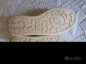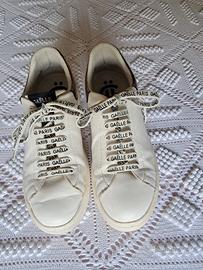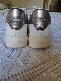 Sneaker donna marca Gaelle n.39 cin lacci logati bianchi e neri, Colore bianco con parte posteriore piombo, ottimo stato