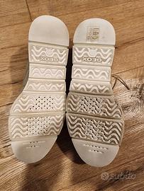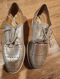 Vendo bellissime scarpe stringate Geox modello Kattilou in color argento (Silver), taglia 37. Le scarpe sono state indossate veramente solo una volta per un evento e sono in condizioni pari al nuovo, come visibile dalle foto. Caratteristiche: Modello Oxford traforato con zeppa ultra-leggera e ammortizzata. Tecnologia: Suola brevettata Geox che garantisce la massima traspirabilità del piede. Stato: Eccellente. La suola è praticamente intonsa e la tomaia argento è brillante e priva di graffi. Incluso: Scatola originale Geox visibile in foto. Perfette per chi cerca la comodità tipica di Geox senza rinunciare a un tocco di stile luminoso ed elegante. Prezzo di listino molto alto, un vero affare visto lo stato dell'oggetto. Ps: ancora scontrino pagate 78,30€ un affare per 60€