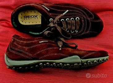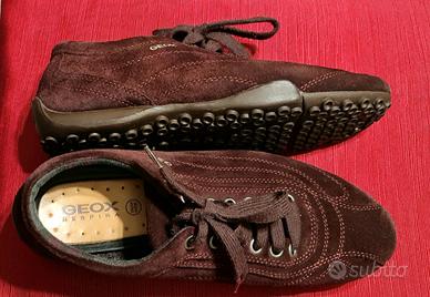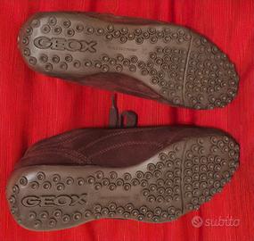 Scarpe GEOX originali, in pelle scamosciata marrone, solette interne in cuoio, suole traspiranti antiscivolo. In condizioni perfette. N°37
