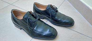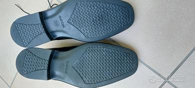 Vendo scarpe Geox da uomo, nere, in pelle, modello elegante. Le scarpe hanno circa 9 anni ma sono state indossate solo 3 volte in occasione di matrimoni. Sono in ottimo stato generale, senza difetti rilevanti, ma naturalmente si tratta di un paio di scarpe usate e non recenti.