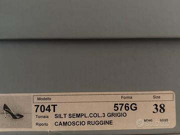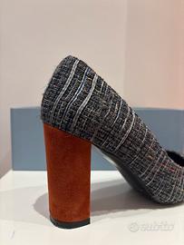 Scarpe décolleté Gianni Marra taglia 38 in pelle rivestita da tessuto bouclé grigio e tacco in camoscio color ruggine. Tacco 9 cm.