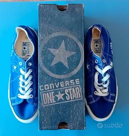 Scarpe da ginnastica sportiva o casual da donna Converse One Star n°38 (5,5) di colore viola e bianco in tela\cotone. Le scarpe sono come nuove con la scatole originale. Come si vede anche dalla para nelle foto.