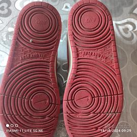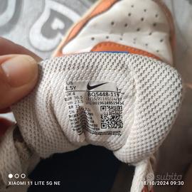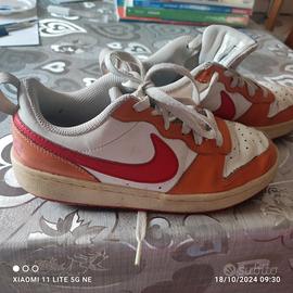 scarpe da ginnastica usate ma ancora in buone condizioni unisex sono bianche arancioni con il baffo rosso,segni di usura sono le pieghe che le scarpe della Nike fanno già dalla prima volta che le porti ,un piccolo segno dì usura vicino al laccetto come da foto