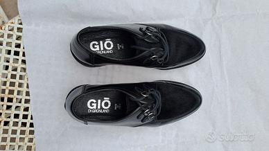 Paio scarpe comode da passeggio eleganti, classiche taglia 37 marca Giò di Grunland nuove, Made in Italy, color nero con lacci, vera pelle, suola in gomma, punta ricoperta di velluto, compreso linguetta, tacco altezza cm 4, suola interna cm 21, venditore privato nessuna garanzia, non si accettano resi, visto e piaciuto, spedizione veloce, con imballo adeguato, grazie.