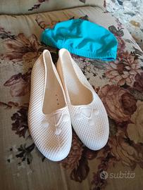 scarpe in gomma mare o piscina numero 34/35 mai usate per errato numero e cuffia