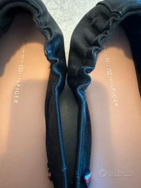 Ballerine nere Tommy Hilfiger, numero 38, usate poco, in ottime condizioni, unico difetto (visibile nell’ultima foto) un piccolo graffietto in punta nella scarpa destra. Scatola inclusa visibile in foto con indicato il numero anche lì.