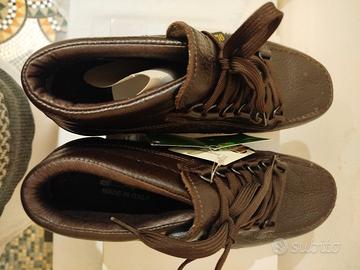 Scarpe nuove uomo trekking Grisport Gritez Run, misura 41, colore marrone scuro. Modello: High Function Gritez Protezione: queste calzature sono foderate con la membrana protettiva originale Gritex che dà una maggiore protezione dall'acqua e dal freddo, a garanzia di piedi caldi anche nelle giornate più fredde ed umide. Per aumentare la protezione si consiglia di pulire la calzatura prima di ogni uso e il trattamento del tomaio con spray Waterproof (silicone idrorepellente per calzature). Non asciugare le calzature in vicinanza oppure a contatto diretto con stufe, termosifoni, ed altre fonti di calore. La fodera Gritez è un'esclusiva per il comfort dei piedi. Suole: La scelta di una suola Rubbermac è garanzia di qualità di materiali. Rubbermac sottopone costantemente le sue suole in gomma a rigorose prove di laboratorio per offrire le migliori caratteristiche di flessibilità e durata. L'elevato grip delle suole è assicurato dalla formulazione di particolari mescole, da un attento studio del disegno del battistrada e da numerosi test effettuati su varie tipologie di terreni in diverse condizioni atmosferiche a garanzia di una sicurezza di utilizzo anche estremo. Costavano 120 euro, vendo solo per inutilizzo in famiglia e mancanza di spazio.
