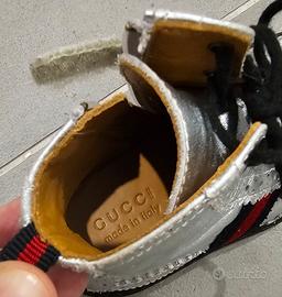 Vendo scarpe Gucci originali taglia 21 per bimba con sacchetto portascarpe come da foto. Presenta segni di usura sulla punta per normale utilizzo ma a parte quello è in ottime condizioni.