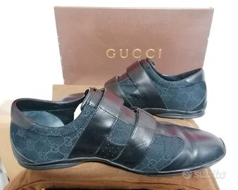 Sneaker GUCCI, pelle nera, con strappi, taglia 42,5
