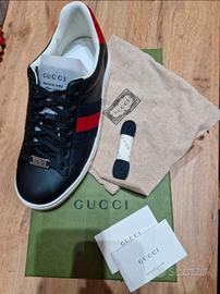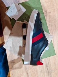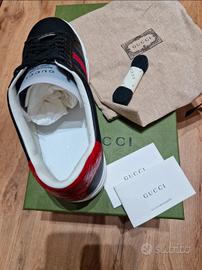 Fin dalla sua introduzione, la sneaker Ace è diventata un accessorio essenziale dell'universo narrativo della Maison. Nell'ultima collezione, viene proposta una nuova versione della caratteristica silhouette bassa caratterizzata da dettagli unici. La forma è definita da una struttura più massiccia, mentre sulla chiusura stringata brilla una targhetta in metallo "ACE". Il caratteristico nastro Web di Gucci completa il modello. Nuove. Mai indossate. Solo ritiro a mano.