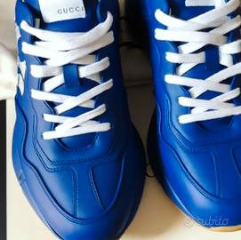 Come da titolo vendo queste scarpe Gucci Rhton completamente in pelle blu, taglia oversize “44 taglia 9”. Usate qualche volta, il loro listino é di quasi 1.000€!