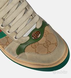 Feeling decisamente vintage per la sneakers di Gucci realizzate in tessuto GG Supreme attinto all'archivio del brand. Rifinite con tallone logato e bande in gros grain rosso verde, sigleranno i vostri casual look con lo stile inconfondibile di Gucci. Rivestimento: pelle, tessuto Tomaia: tessuto, pelle Suola: soletta in pelle, suola in gomma Colore: Beige Punta: punta tonda Chiusura: lacci Colore del designer: New Sa/Du.Mi/Vi.Gr/N Made in Italy Numero articolo: P00398040 Numero 43 Prezzo non trattabile