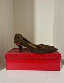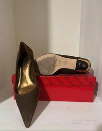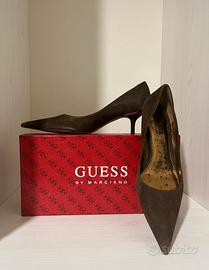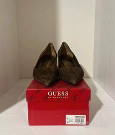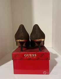 Scarpe guess vintage in camoscio marrone con dettagli dorati. Tacco di 3 cm. Con scatola originale. Taglia 37. Presenti solo segni del tempo nell’interno scarpa come da foto, per il resto in ottime condizioni.
