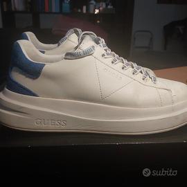 Scarpe Guess in pelle. Bianche con particolari blu. lacci logati. Ottime condizioni