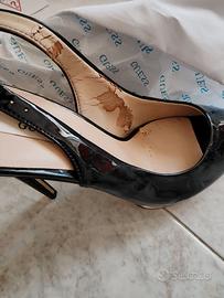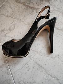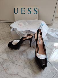 Scarpe Guess Open Toe slingback nere lucide tacco 12 cm plateau 2 cm.