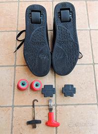 Si possono usare come scarpe normali, inserendo il tappo o come scarpe da per pattinare inserendo le rotelle.