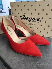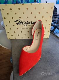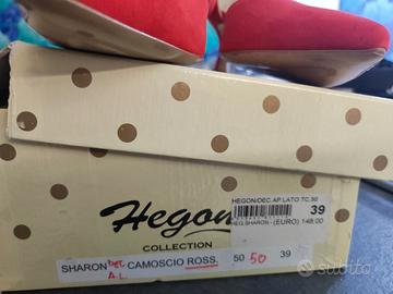 Scarpe HEGON COLLECTION camoscio rosso vera pelle, misura 39. Hanno la plastica sotto la suola come da foto, scarpe acquistate e mai indossate