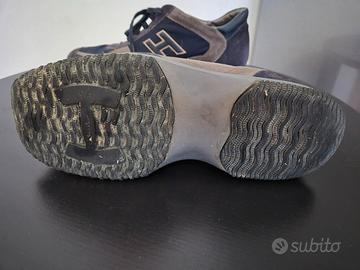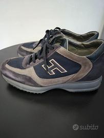 vendo scarpe hogan interactive, colore blu e grigie, scarpe sneakers in tessuto e pelle, da uomo, numero eur 42 uk 8, originali, in materiali leggeri e confortevoli, ottimamente tenute. scarpe da passeggio, sportive e idonee in occasioni formali. appena lavate e igienizzate, comodissime e stupende. euro 30