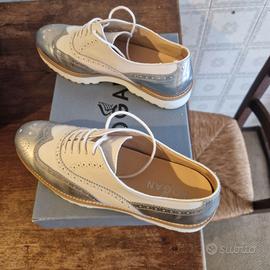 Scarpe HOGAN donna modello Route Francesina bucature argento bianco tg.38,5.