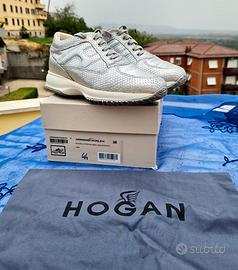 Vendo bellissime scarpe marca Hogan donna originali modello new interactive numero 38 color argento in ottime condizioni complete di scatola e custodia originali.