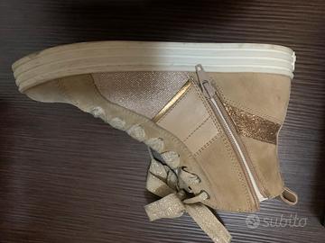 Scarpe Hogan Junior color oro/beige indossate solo una volta per errato numero (taglia 32). Compresa scatola e sacchetto porta scarpe. Per bambine 6/7 anni.
