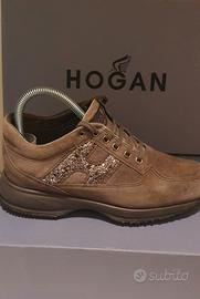 Scarpe Hogan New Interactive H - con spezzatura di GLITTER in pelle scamosciata color grigio misura 36 1/2 ( trentasei e mezzo) misura Hogan anche se io calzo normalmente il numero 38