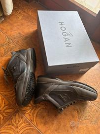 Sneakers in pelle, tessuto tecnico e camoscio, H in rilievo in pelle applicata sul fianco, rialzo interno e suola in gomma. Logo a rilievo sul tallone e sulla linguetta. Custodia firmata inclusa.