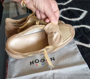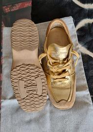 Vendo scarpe da donna/junior numero 35 (vestibilità 36) scamosciate con rifiniture color oro come da foto.