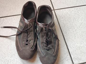 Scarpe Hogan originali marroni da uomo taglia 9 1/2 corrispondente a 43 1/2. Usate molto poco, come si può notare dalla suola praticamente non consumata. Unica particolarità, proprio per essere pignoli, è la linguetta leggermente piegata