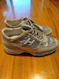 Scarpe HOGAN sportive donna n. 35, scamosciato e argento. In vendita per inutilizzo.