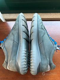 scarpe Hogan originali da uomo, colore grigio con lacci blu.