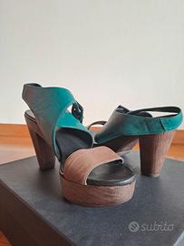 Scarpe da donna con tacco 10 cm in pelle e legno n 40 con fibbia regolabile. Brand: Hoss