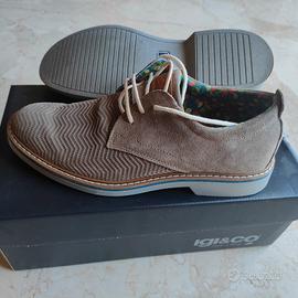 Scarpe nuove mai indossate modello stringate marca IGI&CO made in Italy, taglia 40 in stile oxford, sono realizzate in morbida pelle scamosciata con suola bicolore antiscivolo. La fodera in tessuto e il sottopiede anatomico estraibile in pelle permette massimo comfort e igiene. Acquisto mai utilizzato praticamente nuove con scatolo originale
