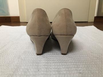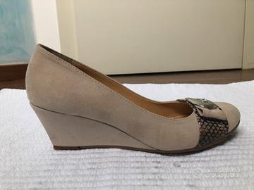 scarpe in camoscio beige eleganti da donna con zeppa. vera pelle , Made in Italy. altezza zeppa 6 cm numero 39 ottimo stato