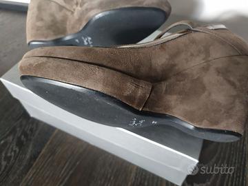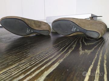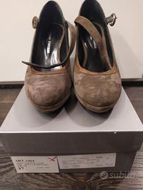 Vendo scarpe in camoscio e pelle con zeppa e fibbia, in perfette condizioni, colore tortora, marca Sergio Fiorelli originali, misura n. 37, tacco 9 cm. Comodissime, ottime rifiniture, sono complete di scatola dove si vede il prezzo originale. Vera occasione. Se vuoi altre informazioni o foto, chiedile pure