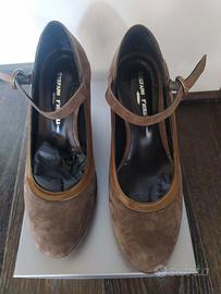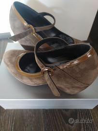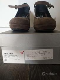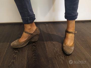 Vendo scarpe in camoscio e pelle con zeppa e fibbia, in perfette condizioni, colore tortora, marca Sergio Fiorelli originali, misura n. 37, tacco 9 cm. Comodissime, ottime rifiniture, sono complete di scatola dove si vede il prezzo originale. Vera occasione. Se vuoi altre informazioni o foto, chiedile pure