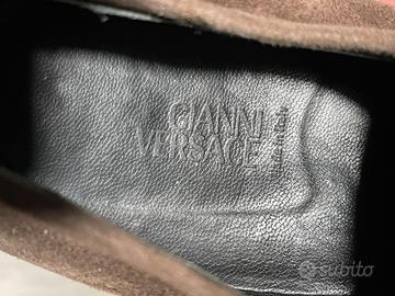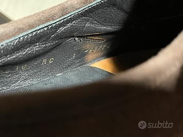 Pelle scamosciata marrone scuro testa di moro, interno pelle liscia, suola in gomma, usate 3 volte..
