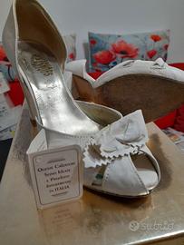 Scarpe spuntate in pelle bianche "Minashoes", con plateau, indossate soltanto una volta. Spedisco nella sua scatola originale.