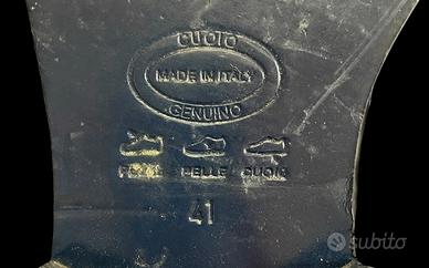 La parte superiore è in pelle nera lucida, scelta per la sua eleganza e resistenza.