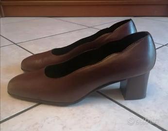 Scarpe marroni in pelle mai usate, suola vera gomma, artigianali. Tacco 5 cm, numero 38. Scambio a mano zona Cesano Boscone o Milano.