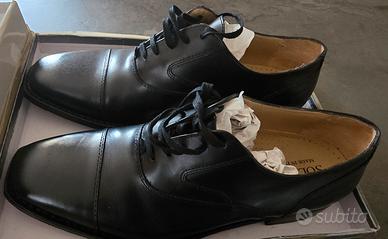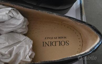 Vendo scarpe modello Oxford della Soldini. misura 45. In pregiata pelle colore nero. Suola antiscivolo. Scarpe da cerimonia indossate UNA sola volta. Scatolo originale non disponibile. Vendo per fare spazio in ripostiglio.
