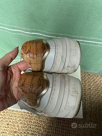 Tennis con strip e lacci in vera pelle comode Prima Classe complete di scatola originale e sacchetto. Una fibbia è venuta via come da foto ma si può rimettere.