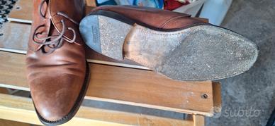 Scarpe da uomo in pelle color marrone, usati ma in buone condizioni. Pelle leggermente consumata ma ancora in ottimo stato. - Suola in buone condizioni, con segni di usura. - Perfetti per un look casual.