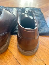 Colore marrone, pelle morbidissima, quasi effetto velluto, interno suola morbidissimo, con uno strato imbottito.
