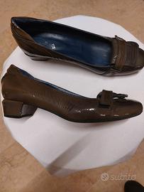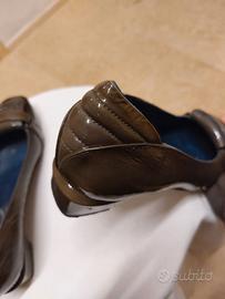 Scarpe in pelle verniciata colore grigio scuro, tacco 3,5 cm,