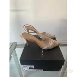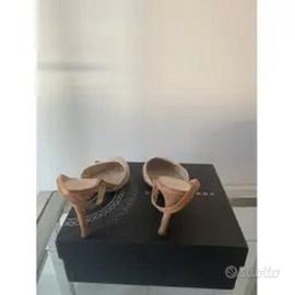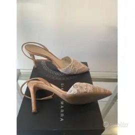 Scarpe in pelle beige e pizzo bianco. Altezza tacco 8 cm Numero 39 Buone condizioni (Usura come da foto) Con scatola originale