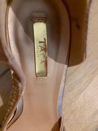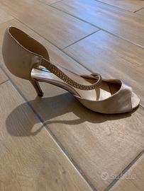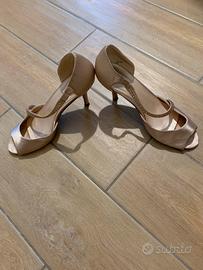 Scarpe in raso rosa numero 37, décolleté a mezza punta, tacco 6, comode. Beand Tata.